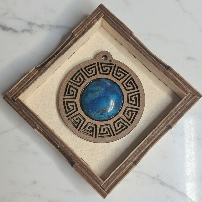 Jeder Anhänger wird in einer besonderen zweiteiligen Holzbox geliefert.